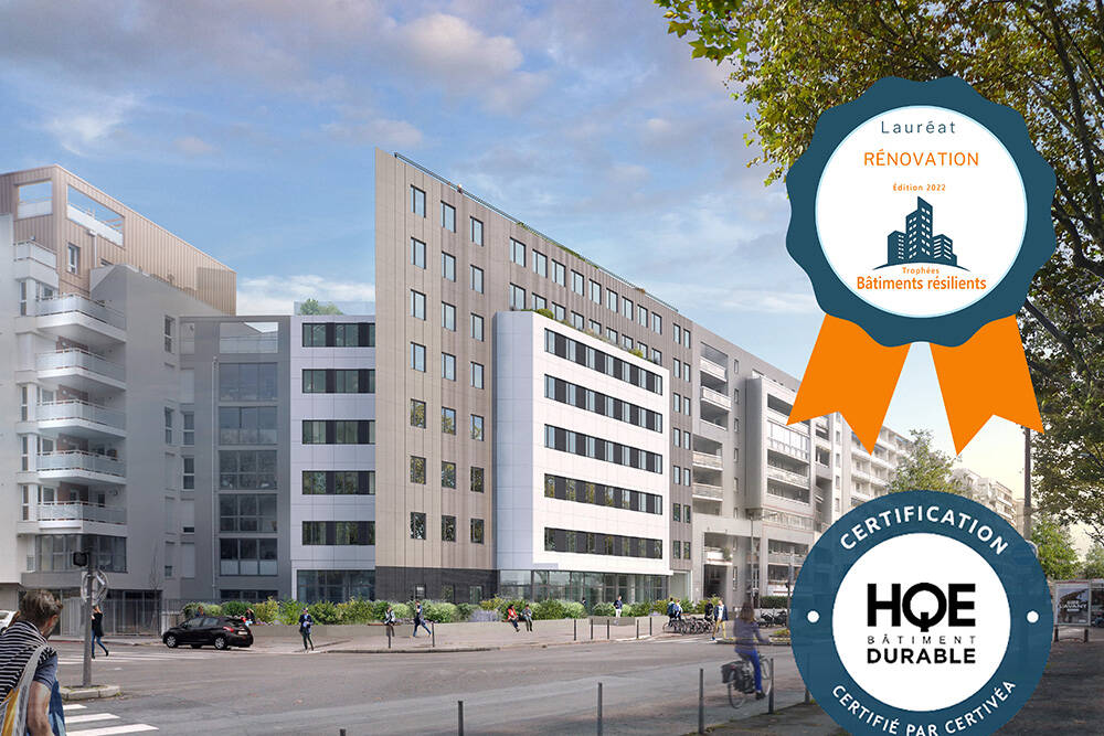 Eco-rénovation d'un immeuble de bureaux R+8, réinventé en école supérieure.