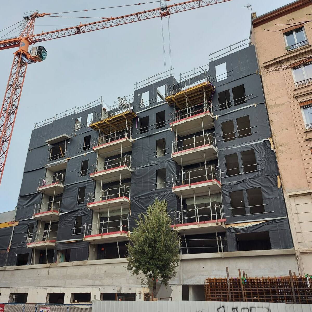 Après la gestion de la phase désamiantage et déconstruction, construction de 24 logements neufs en surélévation d’un bâtiment existant (R+7+attique). Le chantier se situe sur un site urbain dense très contraint limitrophe avec un axe majeur de Villeurbanne et peu d’emprise possible sur le domaine public.