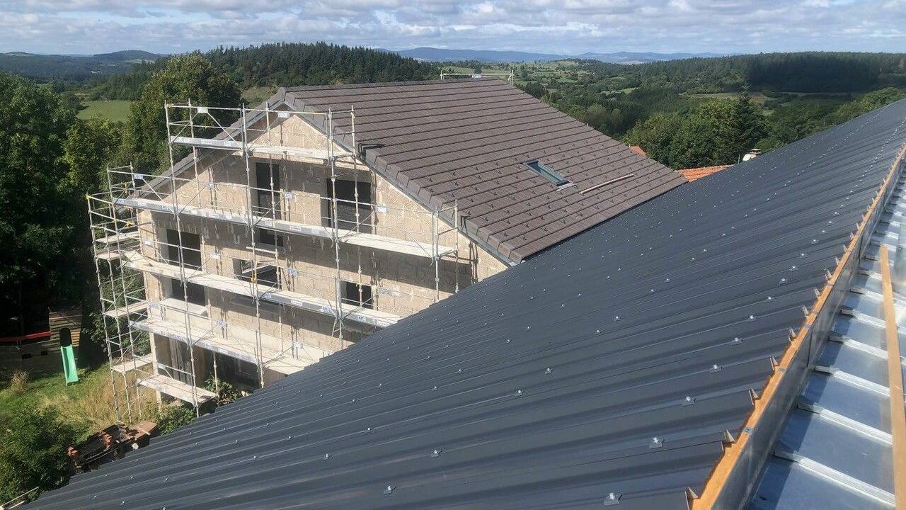 La toiture associe isolation en laine de bois, zinc côté Nord et panneaux photovoltaïques côté Sud. La partie habitation intègre une isolation complémentaire par l’extérieur, atteignant le niveau Maison Passive : « Le coût de l’isolation est compensé par l’absence de chauffage central. »