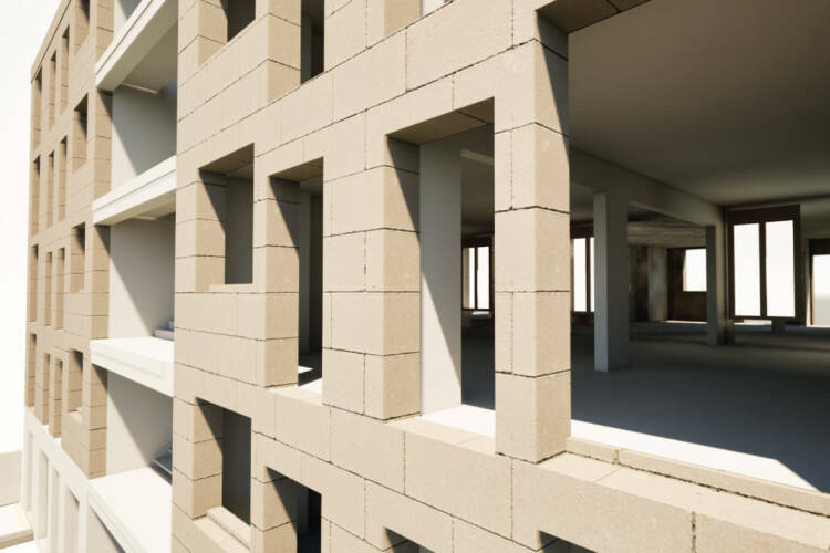 • Façades non porteuses en bloc de chanvre : 250 m²