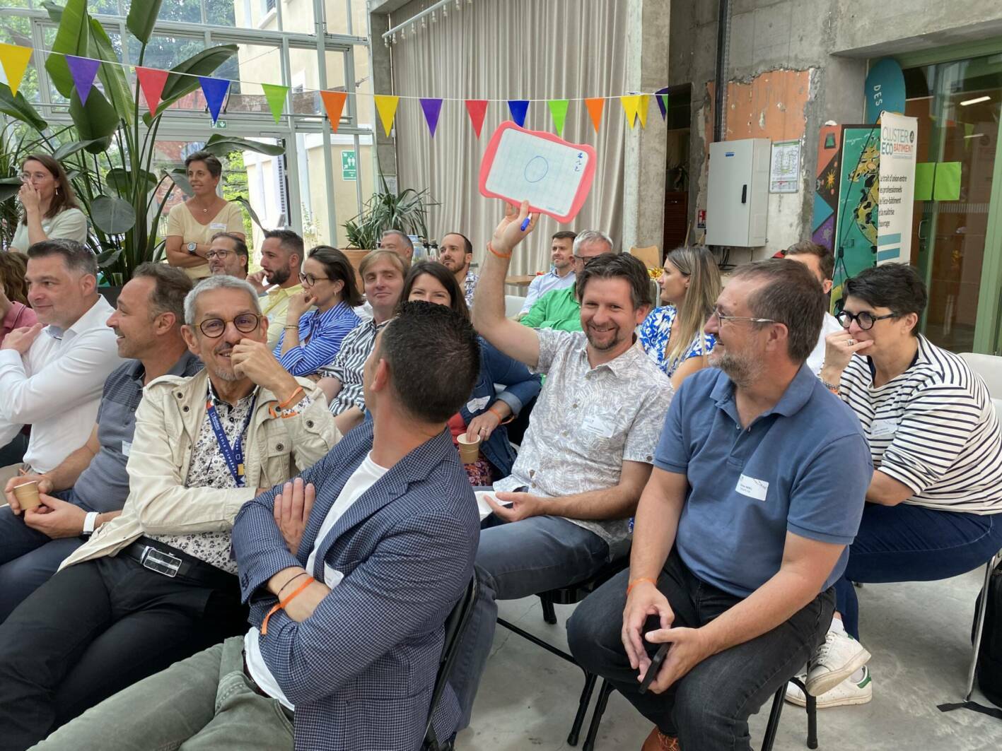 Une fois n’est pas coutume, pour cette Rencontre Inter-Membres, le cluster Eco-Bâtiment a organisé sa Kermesse ! Accueillie à l’Autre Soie, une centaine d’adhérents a répondu présent et s’est prise aux jeux… Sous couvert d’ateliers ludiques, les adhérents ont (re)fait connaissance. Les traditionnels pitch des nouveaux et la présentation des actions du deuxième semestre par l’équipe du Cluster, étaient également au programme de la rencontre.