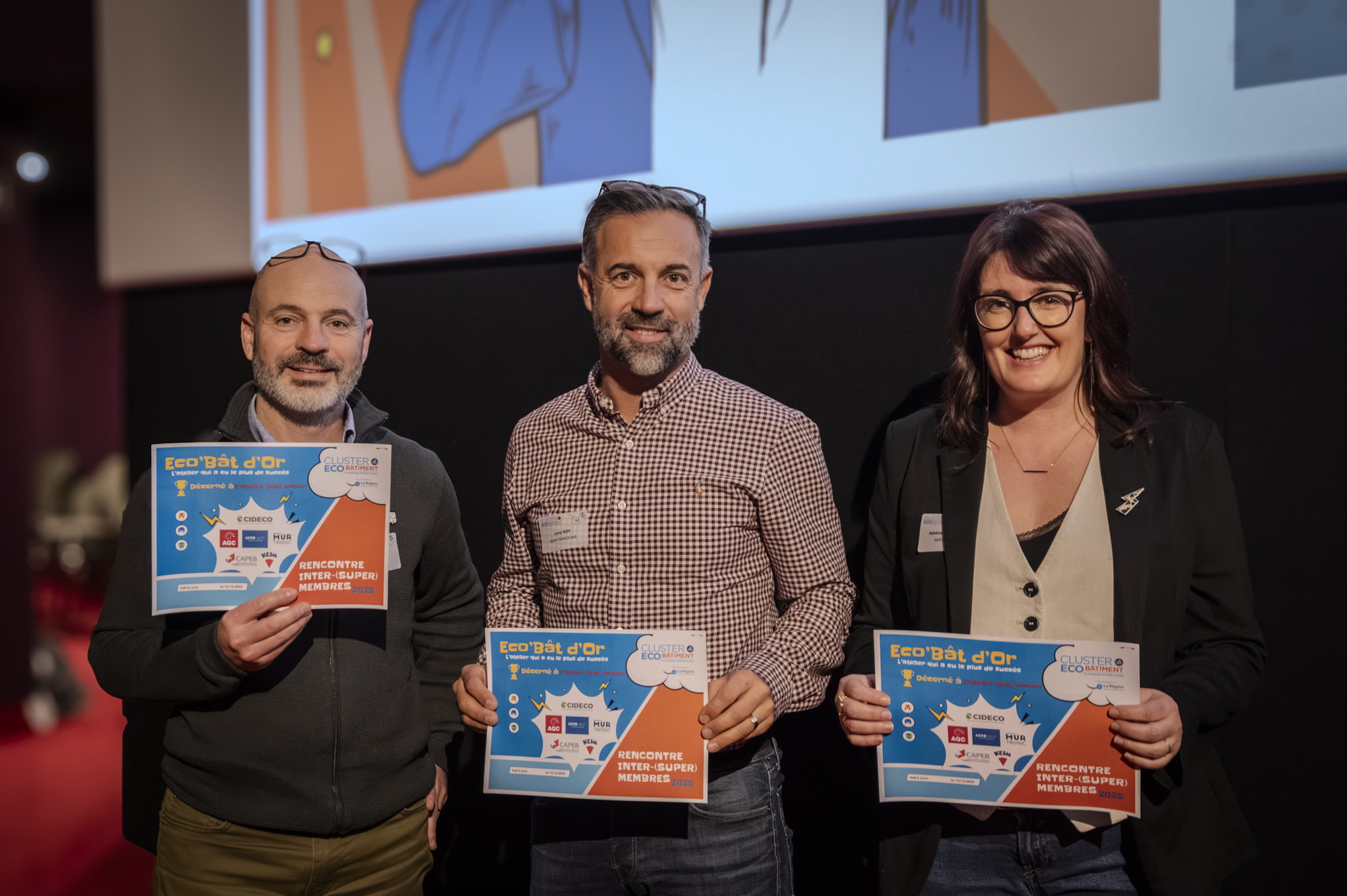 Félicitations à AEROLOGY, SAJ Architectes, Fibois Auvergne-Rhône-Alpes, Métropole de Lyon, CAPEB Auvergne-Rhône-Alpes, Agence Qualité Construction, CIDECO, KEIM France, Mur-Tronic, grands gagnants des Eco-Bat(man)’ d’or de cette année !