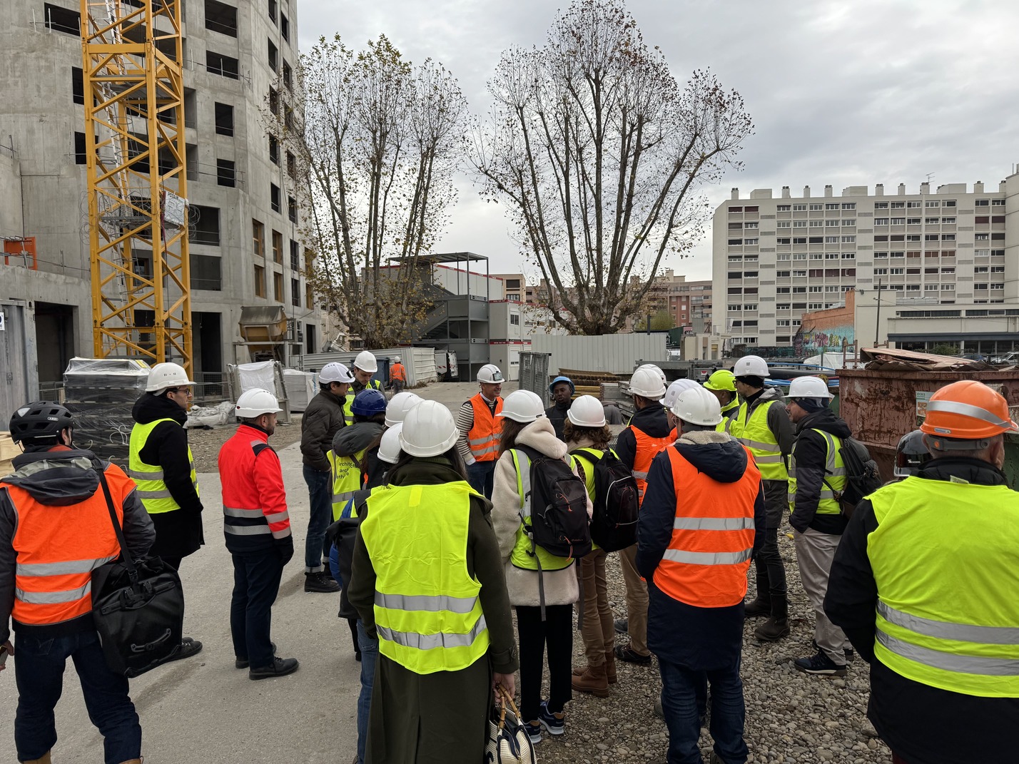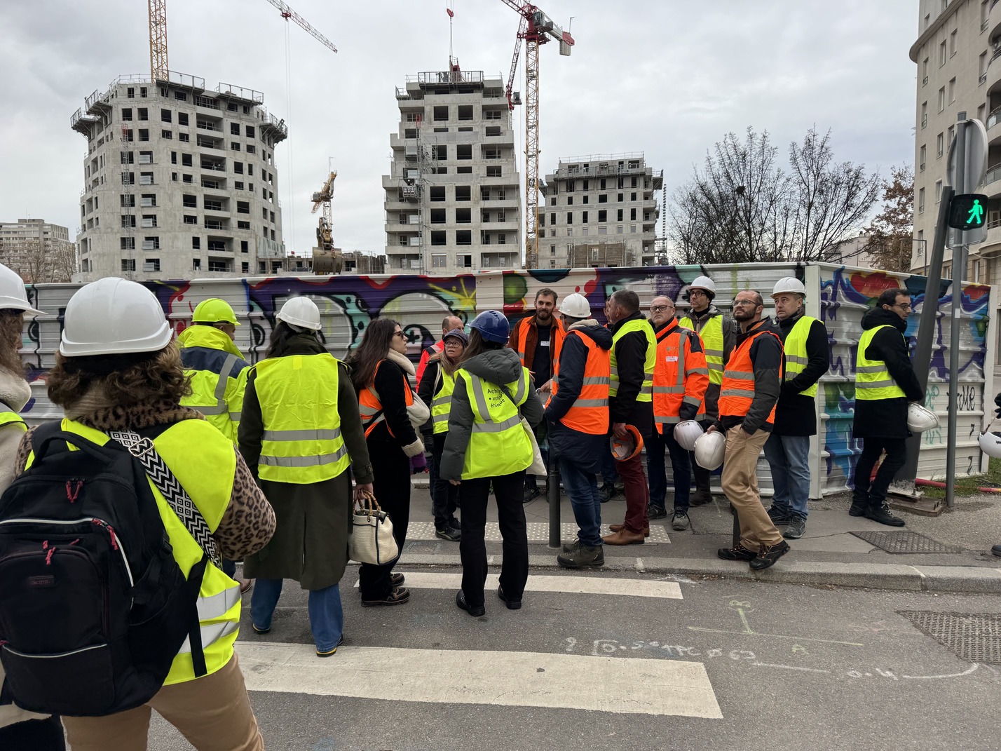 La matinée s’est conclue par une visite de la ZAC Gratte-Ciel, où un focus a été fait sur l’aménagement des espaces publics, comprenant, entre autres, un lycée, un gymnase et une piscine. Ce projet illustre comment l’innovation et la durabilité peuvent transformer un quartier tout en minimisant son empreinte écologique.