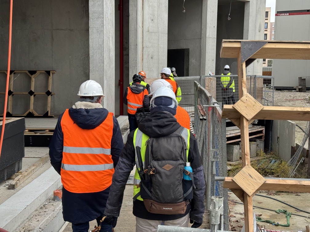 Les participants ont par la suite visité le chantier Quartus, où Tremplin Bâtiment a détaillé les bonnes pratiques de gestion des déchets et de valorisation du tri. Ce chantier met l’accent sur le recyclage et la réduction de l’impact environnemental.